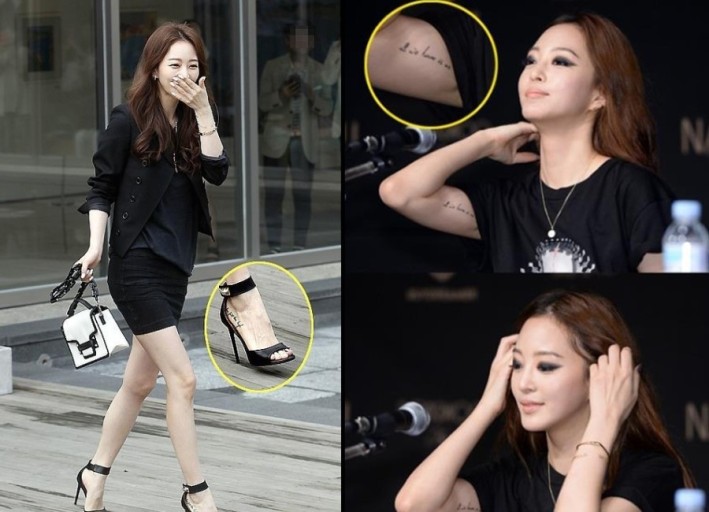 한예슬은 타투가 많은 연예인으로도 유명한데요, 무려 12개의 타투가 있다고 밝히면서, 가장 최근에 그린 타투의 의미를 알려 주기도 했습니다. 바로 화끈하게 명치 부위에 칼 세 자루를 그린 타투인데요, 각각 힘, 용기, 보호를 상징한다고 합니다. 물론 12개의 타투가 모두 큰 의미를 갖는 것은 아니고, 어떤 것은 철없던 시절에 충동적으로 한 것도 있다고 하면서 후회는 없다고 밝혔습니다. 새로운 시도와 도전을 두려워하지 않는 쿨한 모습이 보이는 것 같습니다.