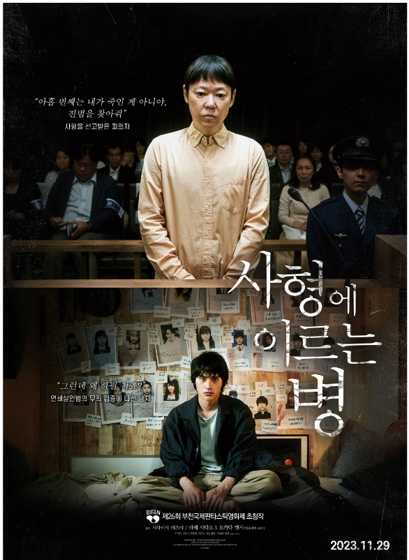 11월 29일 일본 범죄 스릴러 영화로 기대를 모으고 있는 <사형에 이르는 병>이 개봉했습니다. 이 작품은 제26회 부천국제판타스틱영화제를 통해 먼저 국내에 소개된 화제작으로 제46회 일본아카데미상과 제65회 블루리본상에서 남우주연상 후보에 오른 아베 사다오의 연기가 좋습니다. 구시키 리우의 소설이 원작입니다.