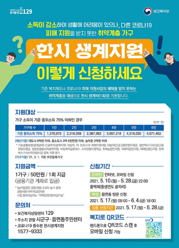 생계지원금, 한시 생계지원금, 50만원 지급한다! (한시생계지원금 신청자격, 신청기간, 신청방법, 제외대상)