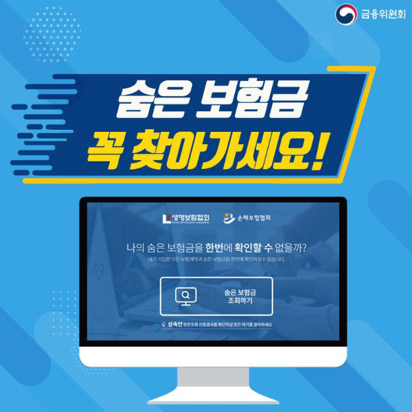 대부분의 보험사들은 우편이나 이메일, 문자 등으로만 보험금 지급 발생 사실과 수령 방법 등을 통지해 놓는 경우가 많습니다. 이렇게 찾아가지 않은 숨은 보험금들을 찾아주는 서비스가 있습니다. '내 보험 찾아줌' 사이트에선 이런 미지급 보험금을 한 번에 조회하고 또한 온라인으로 청구할 수도있습니다.