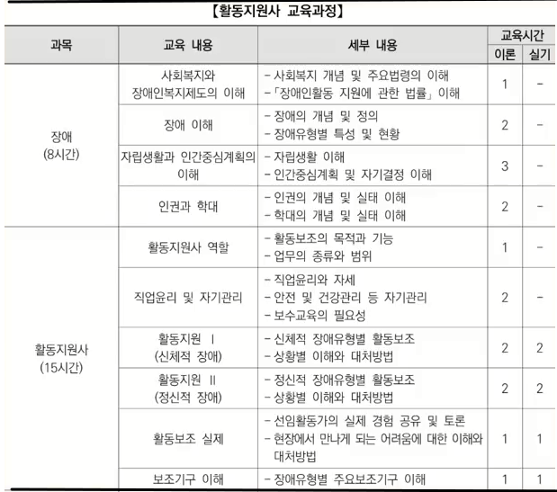 장애인 활동 지원사가 되려면 교육기관(센터)에서 교육과정을 수료해야 합니다.