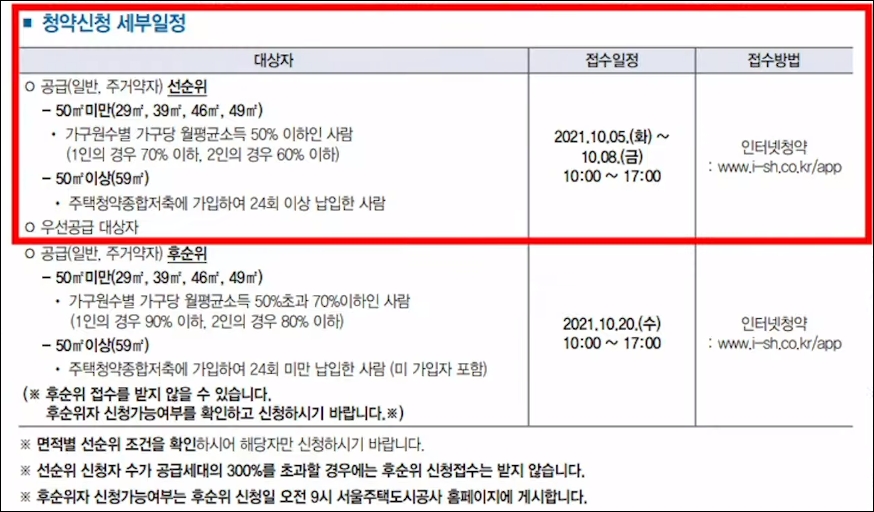 신청 세부 일정은 공급 50제곱미터 이하는 2021년 10월 5일부터 10월 8일까지 인터넷으로 청약을 접수합니다. 청약 순서는 인터넷 청약 시스템, 모바일도 가능하고 pc도 가능한데요, 첫 단계부터 마지막 8단계까지 참고해 주시기 바라고요, 인터넷 청약을 위해서는 공동 인증서를 발급해서 미리 소지해야 됩니다. 청약이 10월 5일 시작되니까 아직 시간이 있습니다. 은행 방문하셔서 신청해 주시면 됩니다. 위치 몇 개 핵심 지역만 살펴보겠습니다. 고덕 강일지구 13단지, 세곡 2 지구 4단지, 고덕 강일 2 지구와 고덕 강일 3 지구 위치를 살펴보시면 좋겠습니다. 기타 자세한 위치는 sh 서울 주택도시공사에 자세하게 안내가 되어 있습니다. 내용이 많기 때문에 요점만 빠르게 정리해 보았습니다. 월 임대료 7만 2800원, 정말 저렴한 금액으로 국민임대주택에 입주할 자격이 주어졌는데요, 10월 5일부터 청약을 시작해 10월 8일 끝나기 때문에 단단히 준비하셔서 이 기회 꼭 잡으시기 바랍니다.