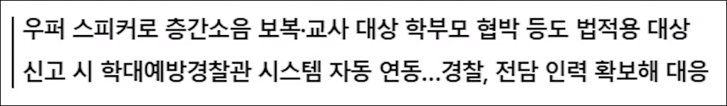 해당 법은 자유롭고 평온한 생활 안정에 다양한 침해 행위를 적용 대상으로 하는 만큼 경찰은 그동안의 개입이 어려웠던 사적 관계에 대한 경찰권 행사가 본격적으로 확대될 것으로 예상을 했습니다. 스토킹 처벌법 적용 대상이 될 수 있는 사례로는 흔히 알려진 연인 간 협박, 온라인 게임에서의 공포심 유발, 충간 소음이나 흡연 시비로 상대방 세대 출입문에 협박성 문구를 부착하는 행위 등이 포함이 됐습니다. 뿐만 아니라 충간 소음 갈등에 아랫집에서 윗집을 겨냥해서 우퍼 스피커를 설치하는 행위 역시 스토킹 처벌법 적용 대상이 됩니다. 또 학부모가 교사에게 자녀의 생활기록부 관련 불만으로 지속해서 협박하거나 민원을 제기하는 일 등도 해당 사례로 제시가 되었는데요, 경찰은 이 같은 사례를 공유하고 신고 접수 시 학대 예방 경찰관 APO 시스템을 자동으로 연동해서 과거 정보를 활용한 신속한 대응에 나서기로 했습니다.